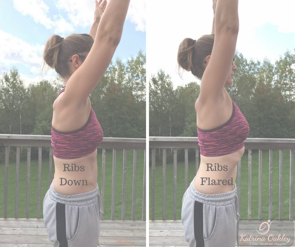 If you notice your ribs are flared when lying down or standing, or you can’t seem to “pull your tummy in” no matter how hard you try, this could be a sign that your rib positioning is still off.