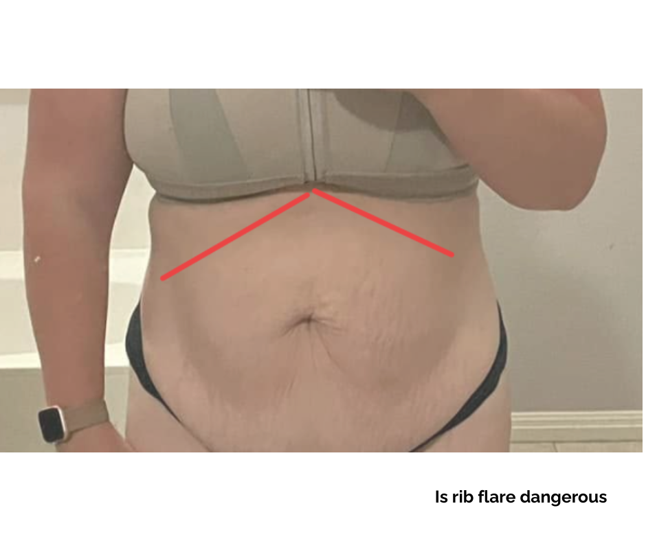 Rib flare occurs when the bottom of the ribs stick out, instead of resting naturally in line with your pelvis. The rib cage flares forward and lifts away from the abdominal wall, creating a visible angle that can make your stomach look “pushed out.”